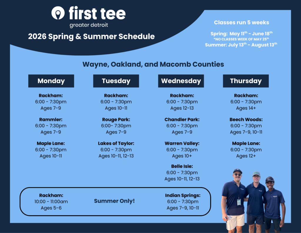 Maple Lane (Mon), Rackham (Tues), Lakes of Taylor (Tues), Warren Valley (Wed), Indian Springs (Wed), Belle Isle (Wed), Beech Woods (Thurs)